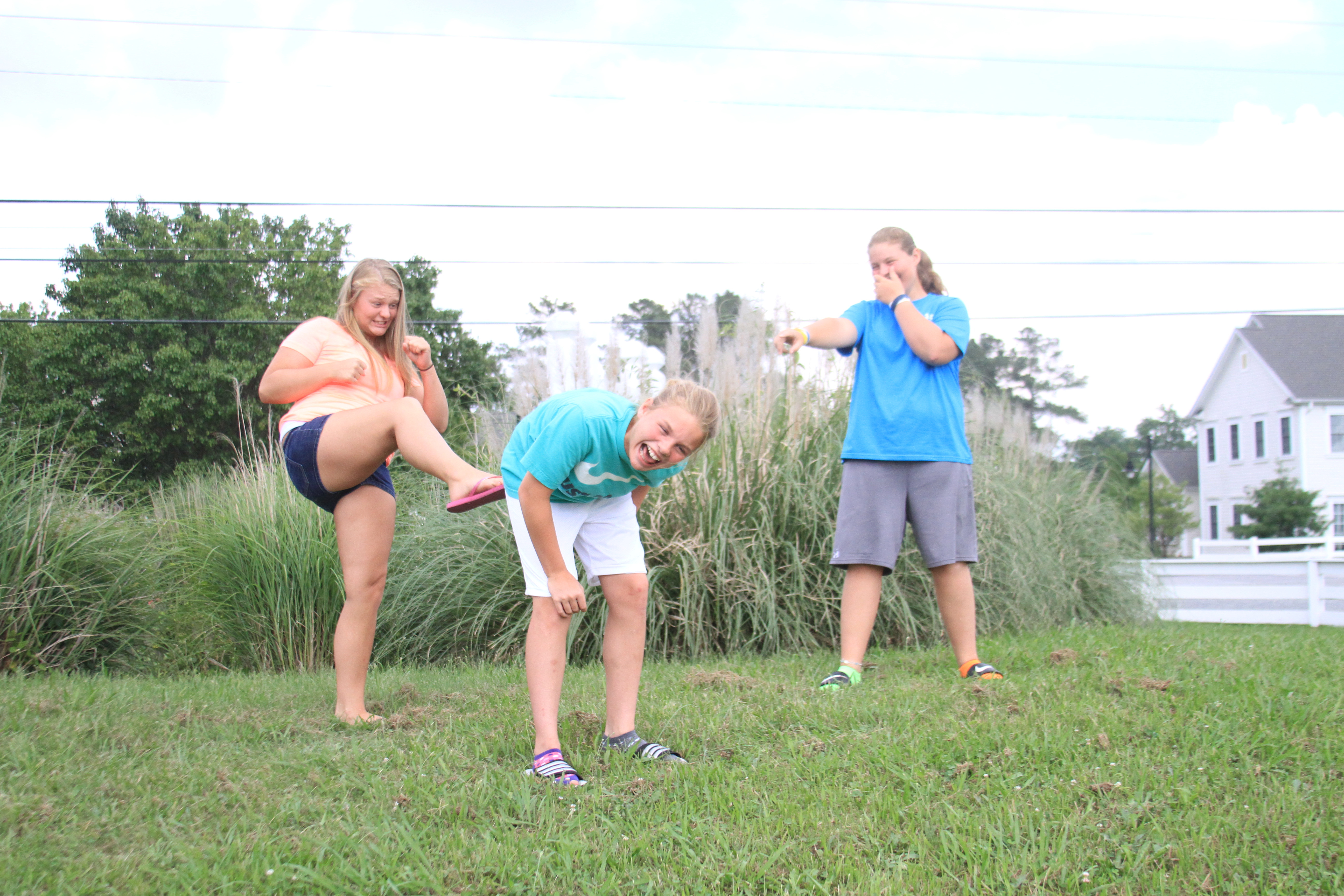 I get a phone call yesterday from my 3 girls. They want a picture of the 3 of them to put in a frame they got their grandmother for her birthday. So ok, I'll meet them out somewhere snap a few pretty shots of them, print them at walgreens so they can have them right away. And go about my day. Or so I thought. I meet with them at one of my favorite locations to shoot, and it was all down hill from there. These goofy children were not interested in taking even the simplest direction. So this is what Grandma got for her birthday (all unedited) ...